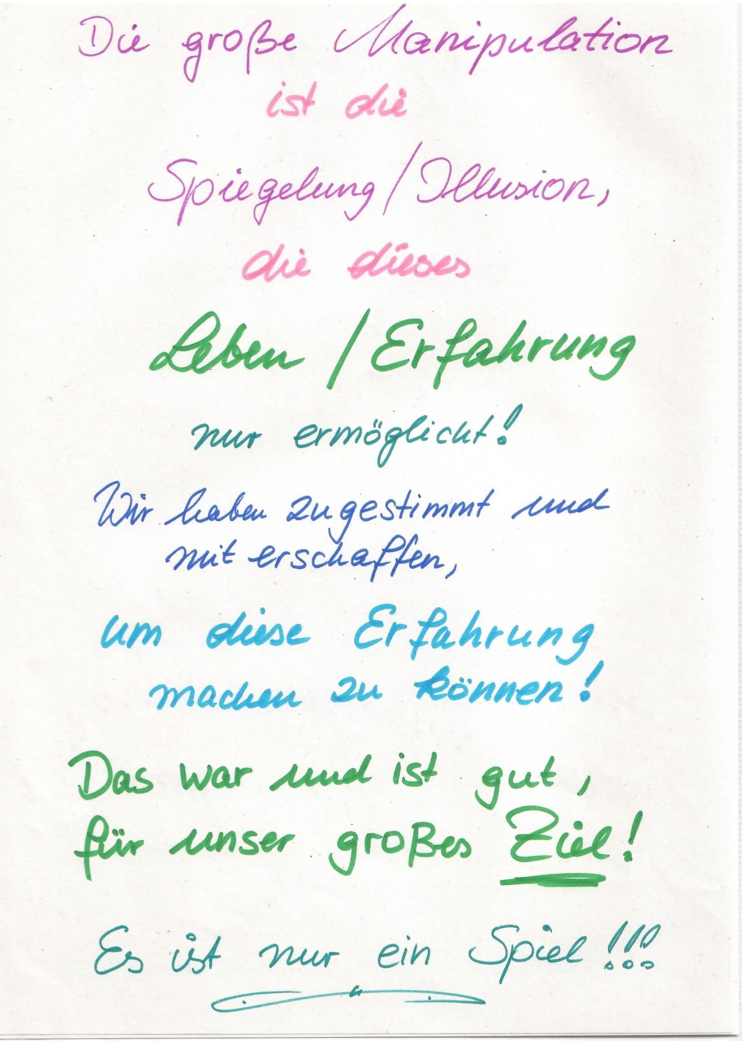 Die große Manipulation ist die Spiegelung/Illusion, die dieses Leben/Erfahrung nur ermöglicht!