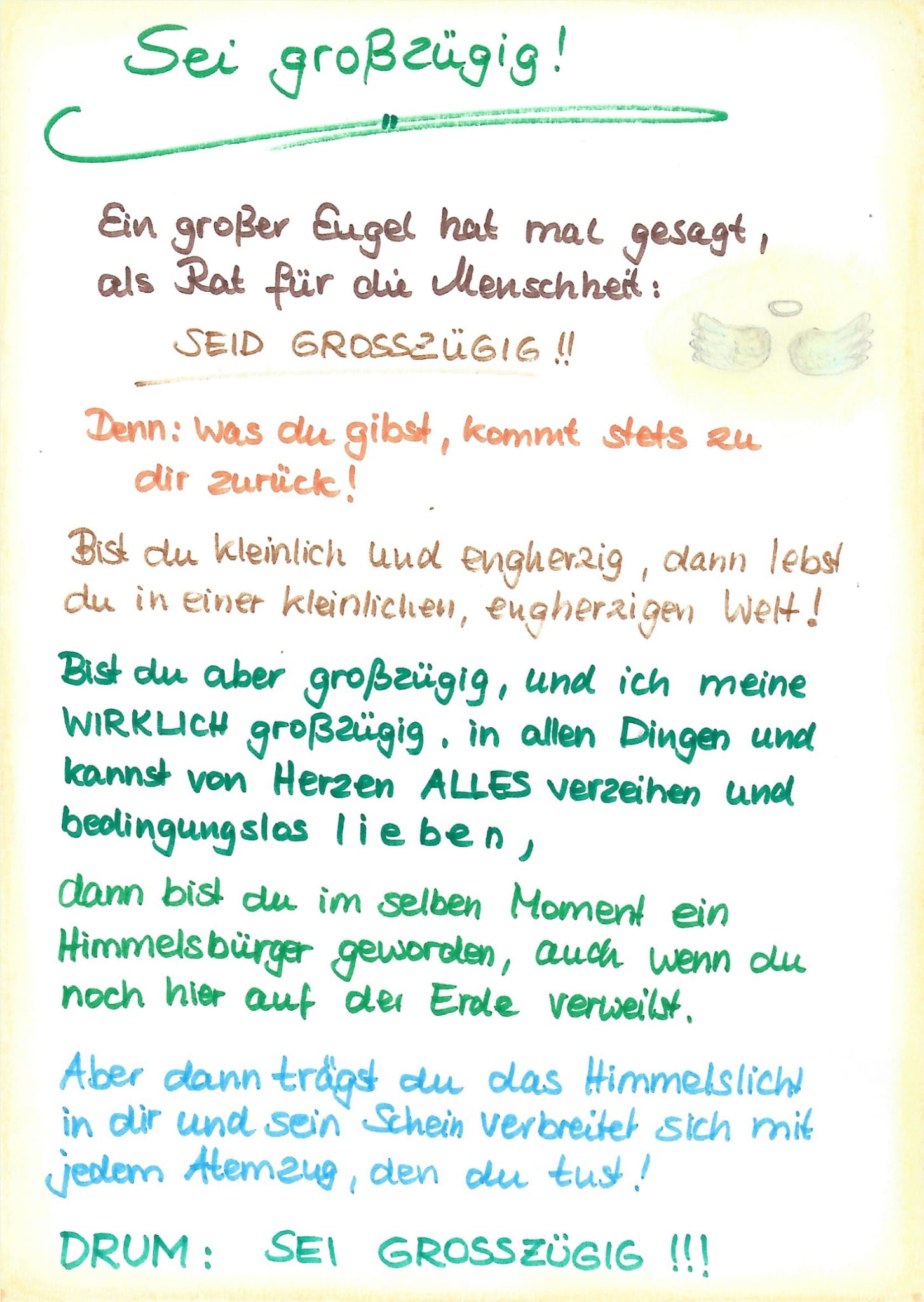 Ein großer Engel hat mal gesagt, als Rat für die Menschheit: SEID GROSSZÜGIG!